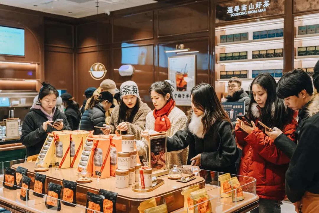 今年1月和2月,山泉制茶所又先后在万象滨海购物村、广州聚龙湾太古里以“店中店”形态落地探索,同样收获了消费者的热情反馈。