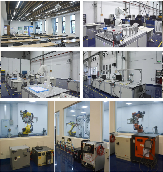 上海临港智能制造实训基地以智能制造技术为主攻方向,基地定位为国内标杆的智能制造实训基地,场地设备豪华,目前拥有8000多平方米实训标准厂房,1000多平方米教学和办公环境,智能机器人覆盖视觉搬运、弧焊、点焊等应用。