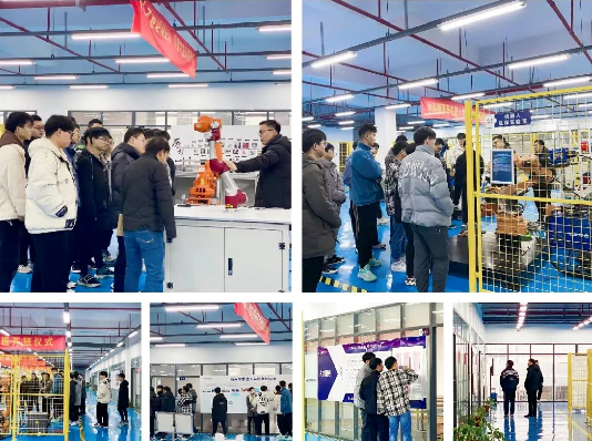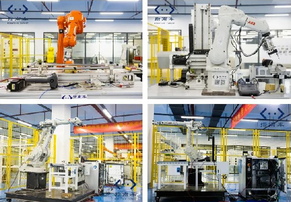 投资近亿元建成的南京智能制造培训基地,配备了协作机器人、Scara 机器人、Delta 机器人、六轴机器人,UR、ABB、KUKA、FANUC、YASKAWA、埃斯顿等品牌。另有多条智能制造生产线,包含从工业1.0到工业4.0生产线以及数字孪生,总占地面积3000多平米。