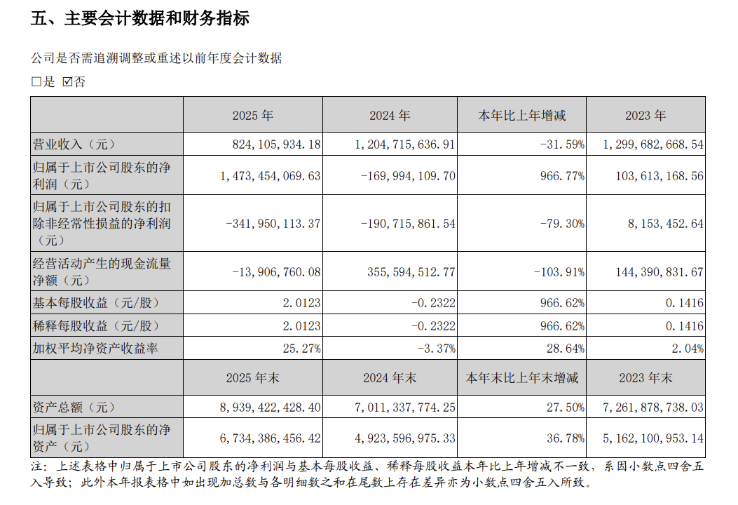 2025年,赛微电子基本每股收益2.0123元/股,同比增长966.62%;扣非每股收益-0.4670元/股,同比下降79.30%。每股收益的大幅增长主要由非经常性损益驱动。