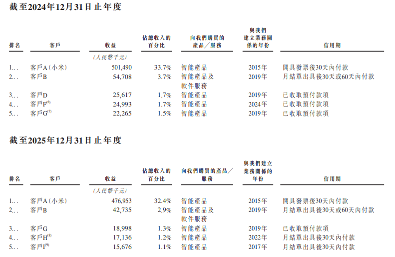 招股书显示,往绩记录期间(2023-2025年),小米一直是Aqara的第一大客户。