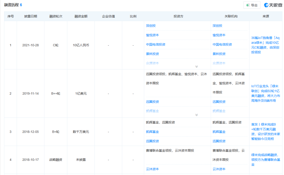 招股书披露,绿米联创自成立以来,已完成6轮次融资,天使轮及A轮融资发生于2025年7月,该轮次投资机构包括小米集团、顺为资本、高榕资本等基金,雷军旗下掌握的小米集团、顺为资本均在这时入股绿米联创。绿米联创最后一轮融资发生于2021年9月,最后一轮融资投后估值达8.5亿元。绿米联创背后的投资机构还有:凯辉基金、澜亭资本、赛博联合基金、云沐资本、远翼投资、愉悦资本、深创投、中国电信投资、景林投资、众源资本、联通中金等。
