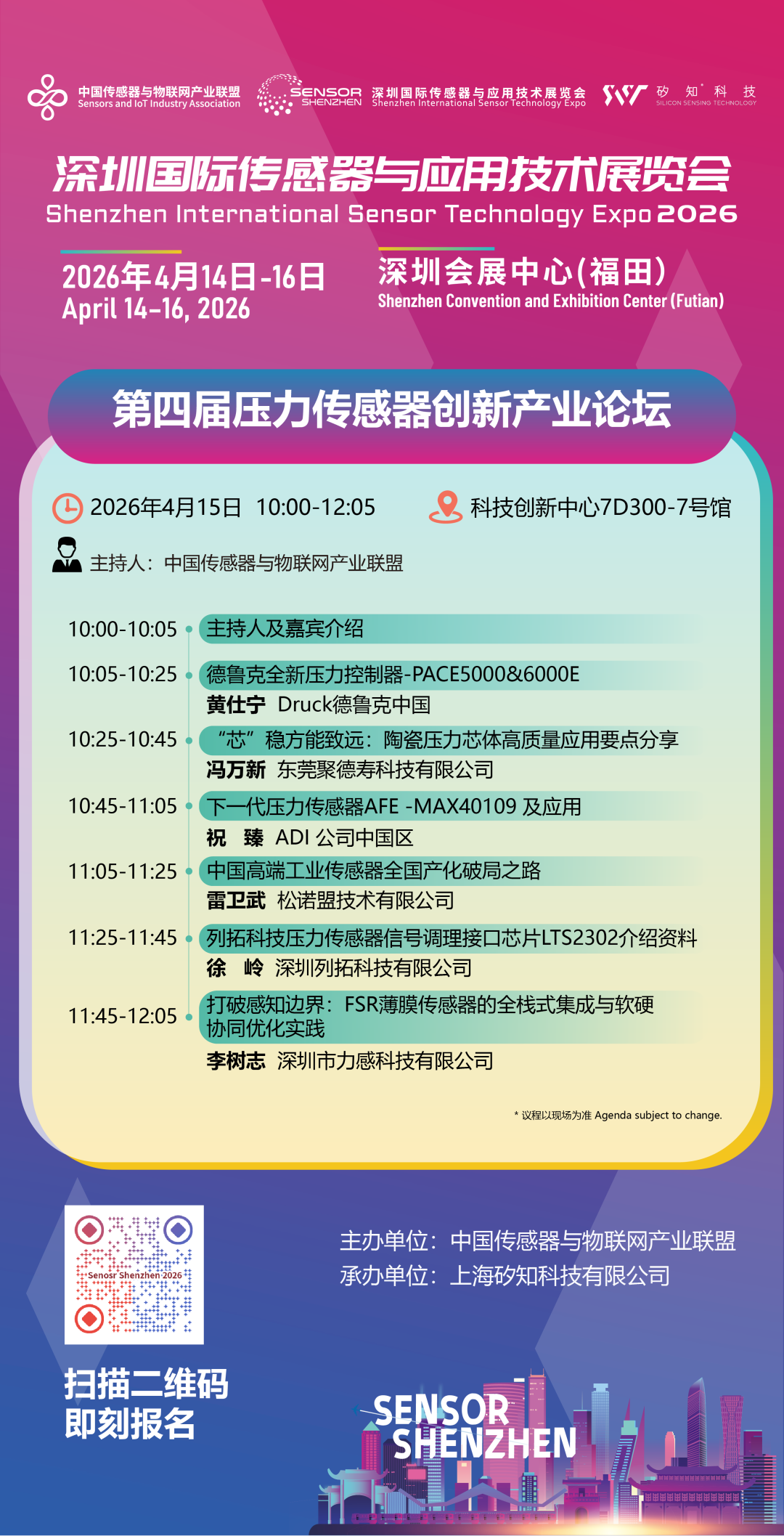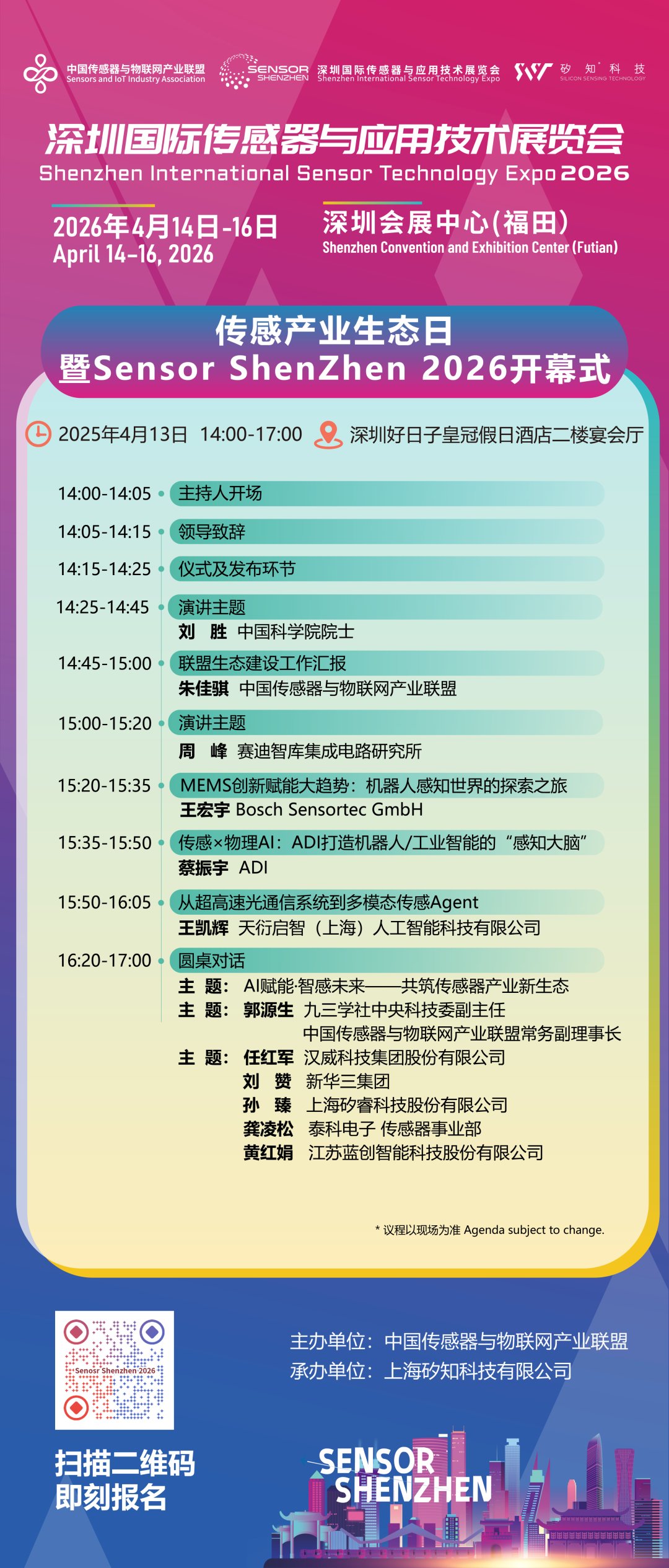 4月14-16日,Sensor Shenzhen 2026即将开幕!,同期20余场技术创新研讨会、应用创新论坛、新品发布会、吸引大批“高、精、新”企业积极参与,还将有大批应用领域代表企业亲临现场对接商机。