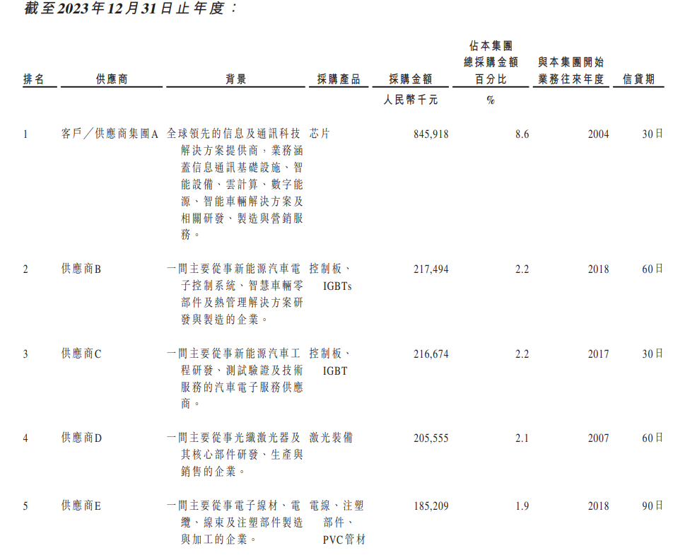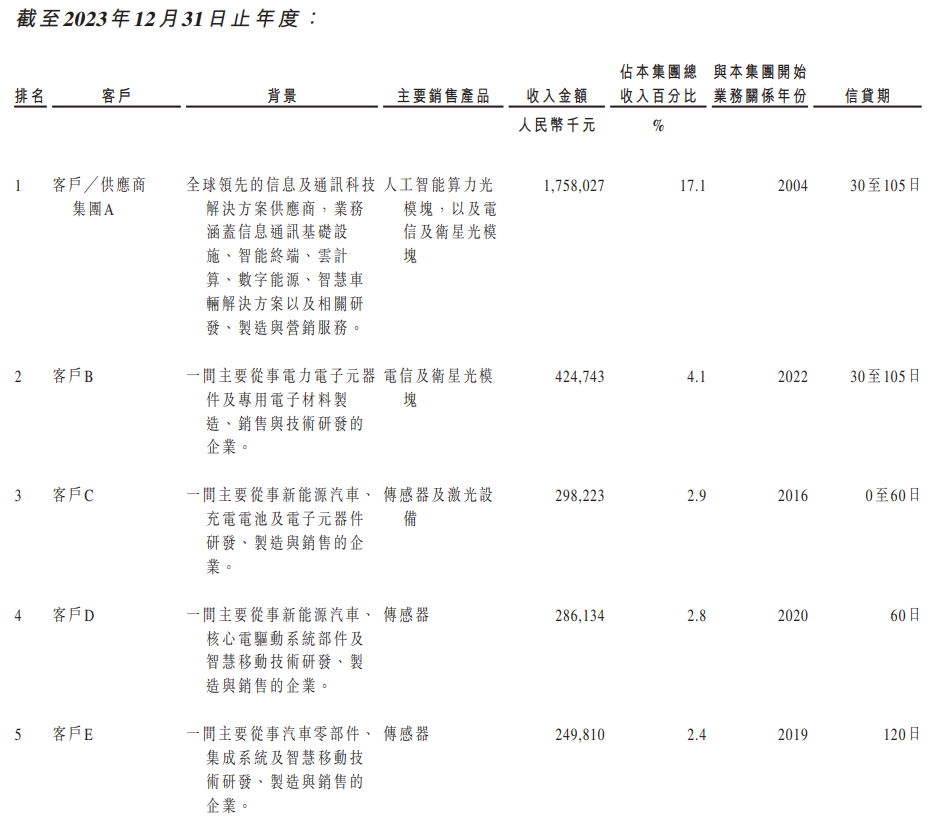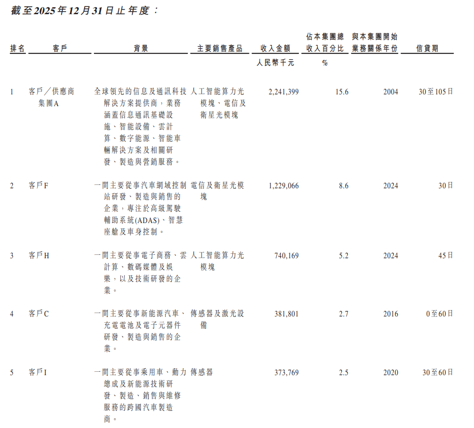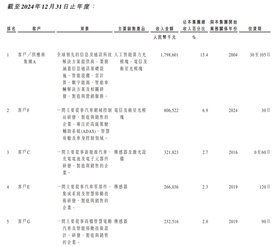 主要客户方面,往绩记录期间(2023-2025年),华工科技来自各年度5大客户的收入分别为30.17亿元、34.25亿元、49.66亿元,分别占年年度总收入的29.3%、29.3%及34.6%。主要供应商方面,往绩记录期间(2023-2025年),华工科技各期向前5大供应商的采购额分别为16.71亿元、26.02亿元、42.89亿元,分别占各期总采购额的17.0%、22.7%及30.7%。可以看到,集团A分别是华工科技各年度最大的客户&供应商,招股书介绍,客户╱供应商A集团为一家从事提供信息通信科技解决方案的跨国综合企业。客户╱供应商A集团向华工科技采购多类型光模块,包括网络终端及家庭终端,华工科技向客户╱供应商A集团旗下多个实体采购光学元件等。