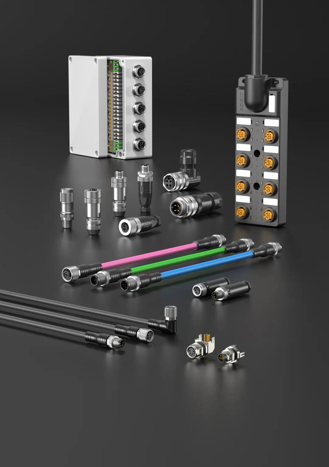 M12和M8圆形连接器是工业自动化领域应用最为广泛的互连解决方案,凭借螺纹锁定机制,在振动、冲击和机械应力环境下确保连接牢固可靠。M12螺纹直径12mm,M8则更为小巧(8mm),两者均采用高品质材料与全屏蔽设计,满足传感器、执行器及工业网络的高要求。