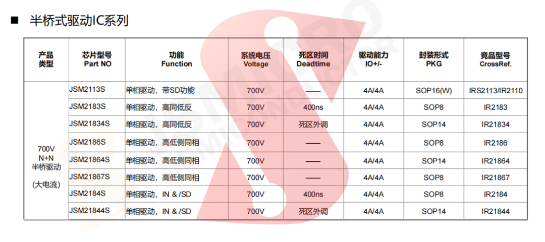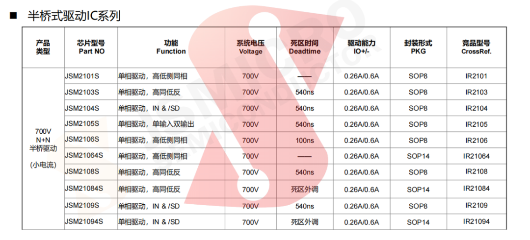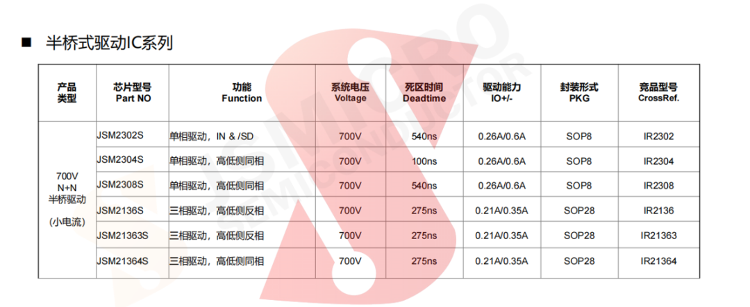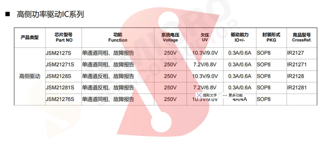 功率驱动 IC:覆盖 25V-750V 电压范围,驱动能力 0.26A-4A,包含高 / 低侧、半桥、隔离驱动等全系列,适配光伏逆变器、工业电机、车载电源等场景,可直接对标国际主流型号。