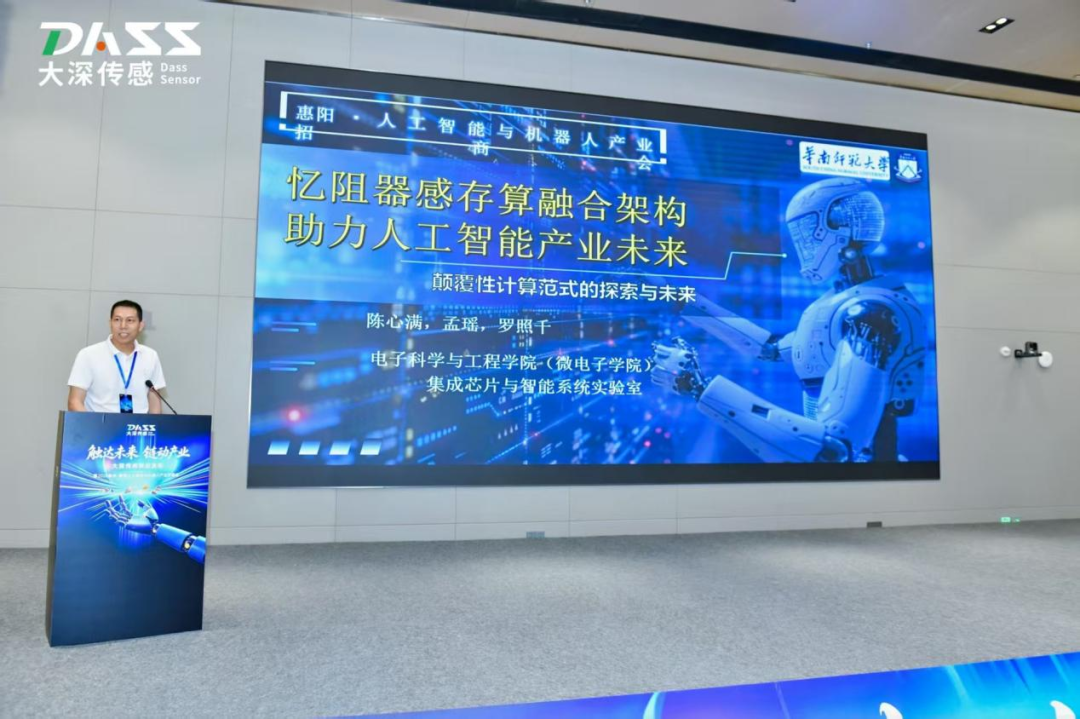 华南师范大学半导体科学与技术学院教授陈心满带来《忆阻器感存算融合架构助力人工智能产业未来》,阐述了忆阻器如何突破冯·诺依曼瓶颈,实现感存算一体化,为低功耗AI芯片与具身智能提供全新硬件基础。他指出,忆阻器交叉阵列可原位完成向量-矩阵乘法,能效极高,已在边缘计算、无人系统、具身智能等领域展现出颠覆性应用潜力。