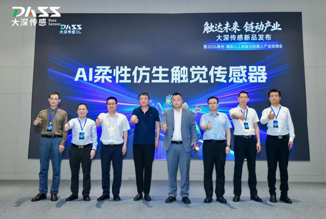 2026年4月24日下午,大深传感在惠州市惠阳区隆重举行新品发布会。此次发布的 AI 柔性仿生触觉传感器将多维感知、AI 算法与柔性材料深度融合,让机器具备类人皮肤的压力、纹理、温度感知等能力,为机器人灵巧手、精密制造、医疗康复、智能物流等场景提供了国产自主的核心解决方案,是大深传感深耕柔性传感前沿,布局机器人与智能交互新赛道的里程碑成果。