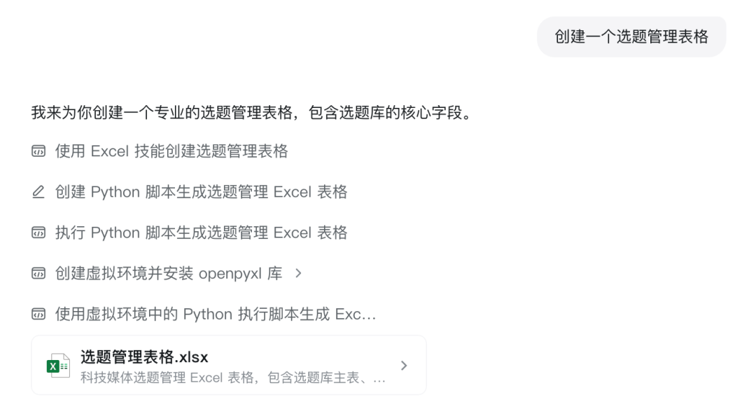 主编有一项重要工作也已经托管给悟空,那就是选题管理,悟空可以自动生成Excel表格,把每天的选题任务都列在上面。更具体的体验,可以点击这里查阅。