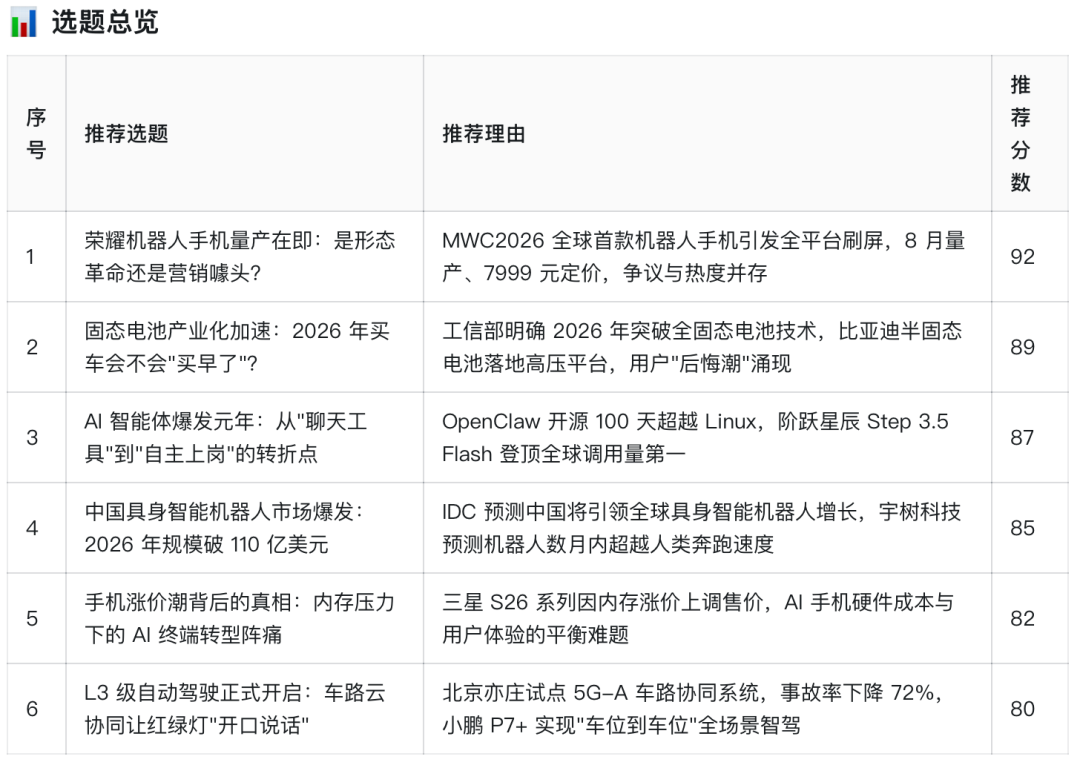 AI其实已经足以改变雷科技编辑们的工作流程。以前「找选题」这件事,很大程度上依赖编辑自己去刷信息、看热点,慢慢积累网感。而现在,是先有一份“已经整理好的信息”,再去做判断。