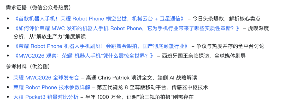 我直接把需求丢给悟空。悟空先是把专题页里的文章全部抓取出来,然后逐篇提取核心信息,再按照内容类型重新分组。比如把趋势类内容单独整理,把产品相关的内容归到一起,再把整体观察做成一个总结板块。