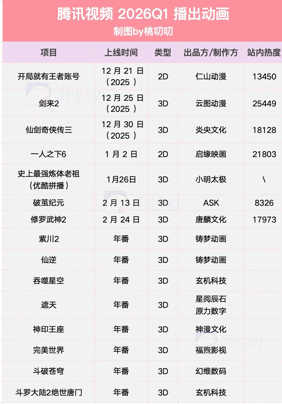 作为IP储备最多、流量最大的平台,腾讯视频动漫凭借《神印王座》《仙逆》《斗破苍穹》《完美世界》等8大年番维稳,同时在Q1上线《一人之下6》、《剑来2》两个大IP续作,值得注意的是这两部IP的真人影视剧后续开发,目前都花落腾讯视频。
