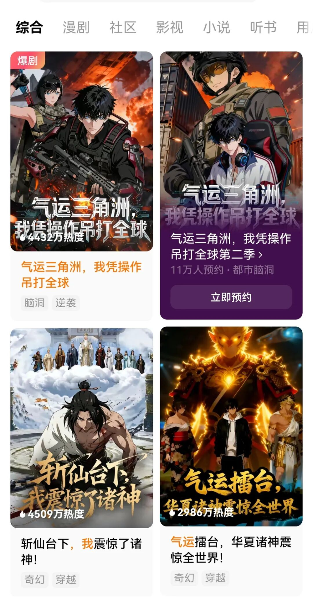 腾讯视频动漫这边,《雪中悍刀行》、《吞噬星空》剧场版《决战原始星》已经开启预约,《遮天》首部剧场版官宣定档4月4日开播,站内预约量目前突破100万。