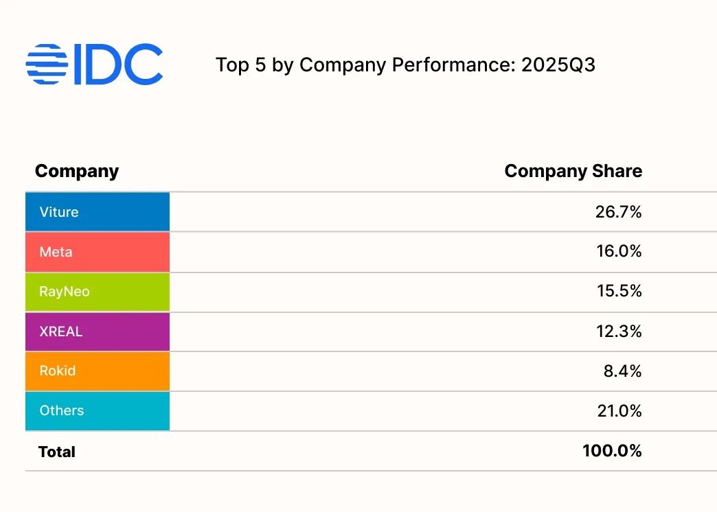 IDC数据显示,VITURE凭借近三分之一市场份额拿下2025年Q3美国AR市场销量冠军。根据亚马逊官方数据,2025年上市的VITURE Luma系列XR眼镜畅销全球。