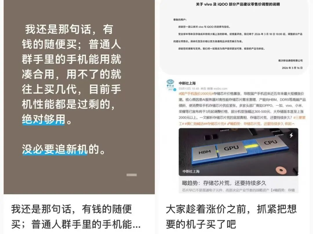 消费者们吐槽身处其中的被动,AI红利还没体验,先被内存涨价砍一刀,能做出的主动选择是不当成本转嫁的“接盘侠”。