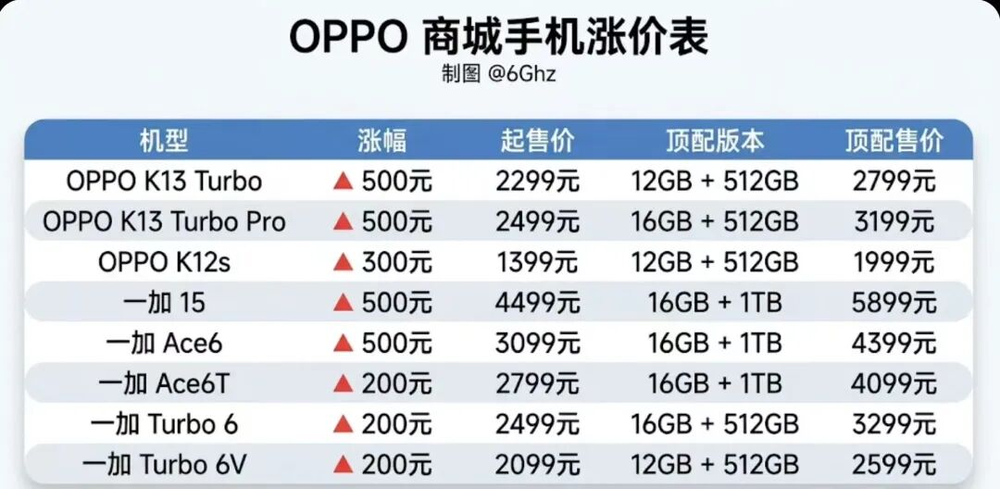 OPPO的A系列、K系列涨幅200元起步,1500元以下的“真香”机型在市场上将更为难找。