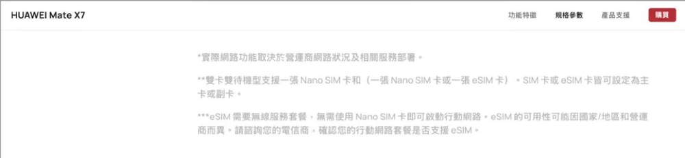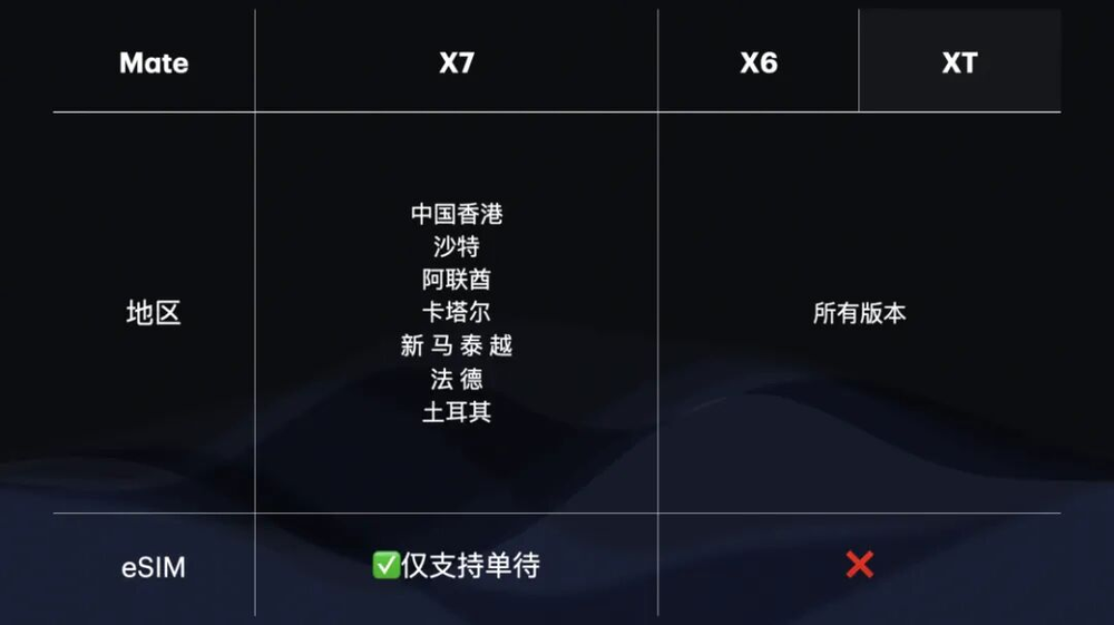 而在Mate系列仅有最新的折叠屏手机Mate X7支持eSIM功能。