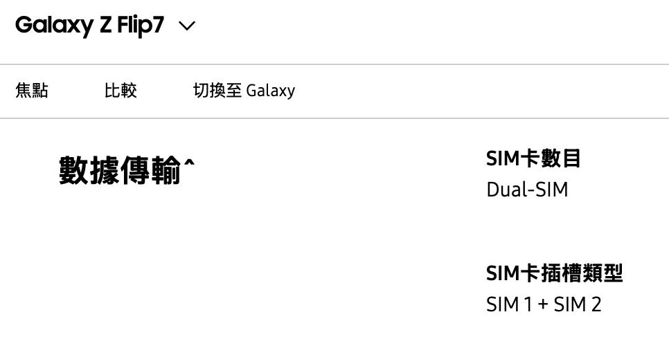 目前,除港澳台地区在售的Galaxy手机外,所有其他地区销售的版本均支持eSIM功能。但不同于iPhone或Pixel相对激进的策略,三星在除Z Flip7外的所有型号上配备了双实体SIM卡槽,主打一个「全都要」。而Z Flip7配备了单实体SIM卡槽,所有机型均支持eSIM双待。