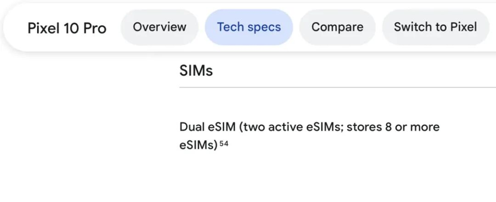 同为首批将eSIM应用到智能手机的厂商,从Pixel 3系列至今所有的Pixel手机均有支持eSIM功能的版本。其中,Pixel 7系列及更新机型支持了eSIM双待。美版的Pixel 10系列(不包括Pixel 10 Pro Fold)不再配备实体SIM卡槽。