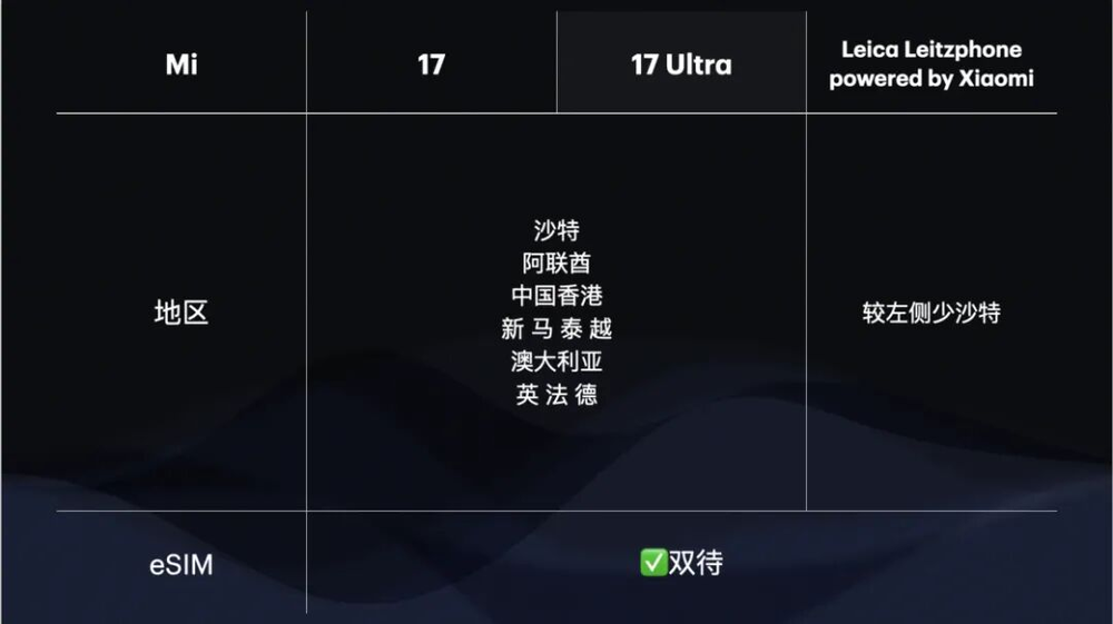 2月28日更新:最新发布的小米17、17 Ultra和Leica Leitzphone powered by Xiaomi均支持eSIM双待、配备双实体SIM卡槽。