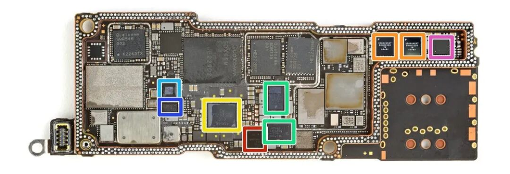 iPhone 14 Pro Max对应主板区域照片,来自iFixit