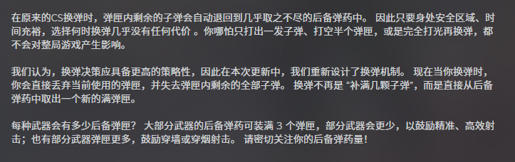 也许这次换弹机制的重构是V社的某种例行创新——但CS的玩家们或许真的不需要这样的创新。