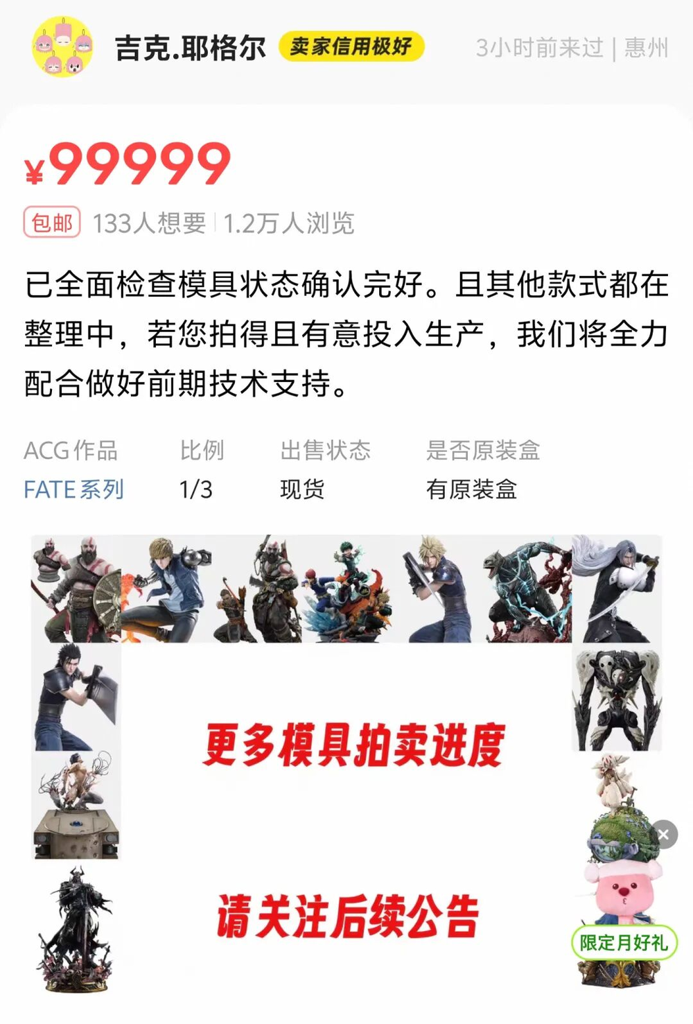到时候原价7000元的呆毛王雕像,“民间散货”可能只要2000+,工厂直发,没有中间商赚差价了属于是……(上色这块儿也挺要技术的,要做到跟正品一样,价格也不会特别便宜就是了)