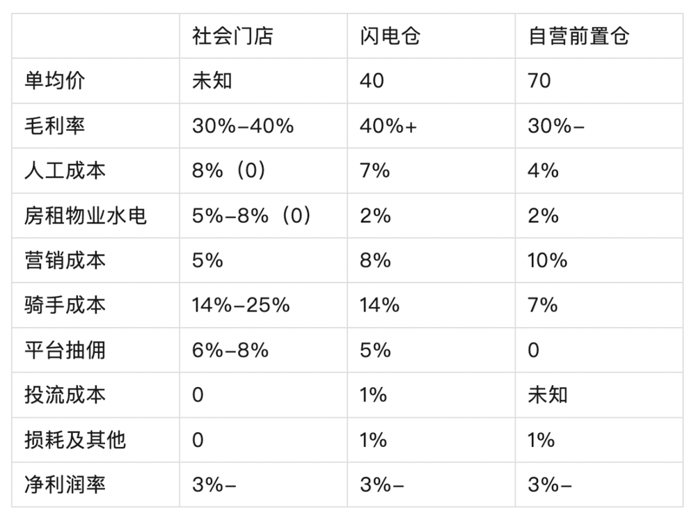 在相同的净利润率下,闪电仓需要最高的毛利率,即对商品加价最高,用户享受不到实惠。