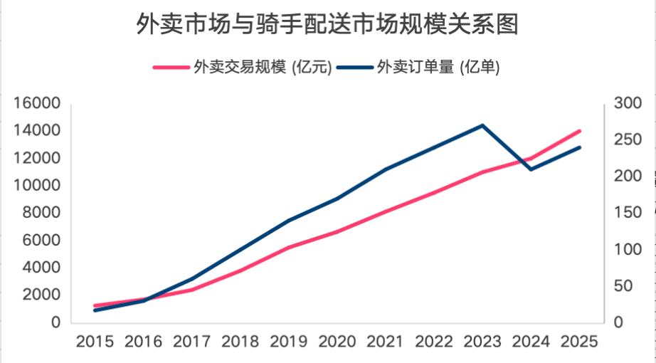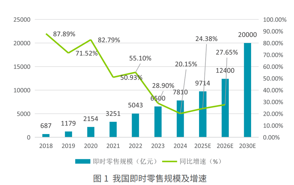 从行业整体来看,2025年即时零售全年规模才接近1万亿,增量是2500亿。
