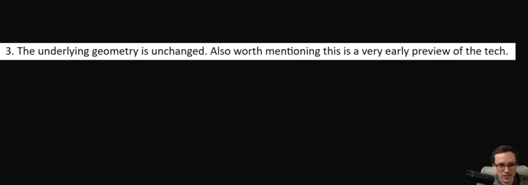 回答:「底层几何不变」,同时补充「这还是非常早期的技术预览」。
