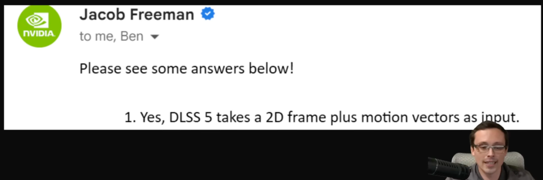第一个问题:DLSS 5 实际上只是以单帧 2D 图像+运动矢量作为输入?