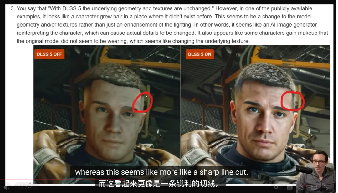 近期 GTC 2026 的现场 Q&A 上,有人问英伟达 CEO 黄仁勋,外界批评 DLSS 5 只是帧级后处理,只是一个滤镜。随后黄仁勋回击称「你们完全搞错了。这不是帧级后处理,这是几何层面的生成控制。」同时英伟达的官方声明也配合着说:「DLSS 5 将游戏的颜色和运动矢量输入模型,将输出锚定在源 3D 内容中。」但日前游戏技术博主 Daniel Owen 联系了英伟达 GeForce 专家 Jacob Freeman,并向后者提问「DLSS 5 是否实际上只以单帧 2D 图像加运动矢量作为输入来生成输出帧?」而英伟达方面表示「是的」。据悉,DLSS 5 的工作流程实际上是:游戏引擎渲染出一帧画面后,这帧画面连同运动矢量一起传给 AI 模型,然后模型在上面生成一层「更真实」的光线和材质效果,输出给玩家。简单来讲,DLSS 5 从来没有读取游戏素材的几何数据,甚至没有读取深度缓冲中的数据,其不会读取来自游戏引擎的任何基于物理的渲染 (PBR) 方面的数据。根据 Owen 从英伟达布道师那里获得的答案,DLSS 5 模型从最终的 2D 渲染帧里「推断(infer)」材质属性。🔗 相关阅读:黄仁勋骗了所有人,DLSS 5 真是个纯 AI 滤镜中国 AI 大模型调用量领跑全球