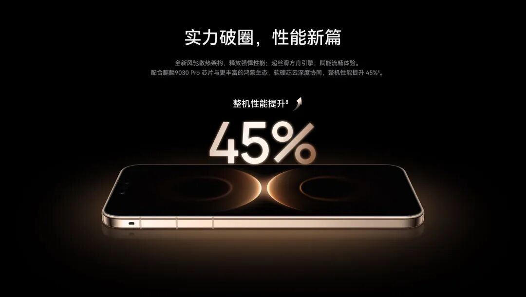 根据发布会上的介绍,在风驰散热架构的加持下,华为Mate 80 Pro Max 风驰版的整机性能相较于华为Mate 70 Pro+ 实现了 45% 的可感提升。