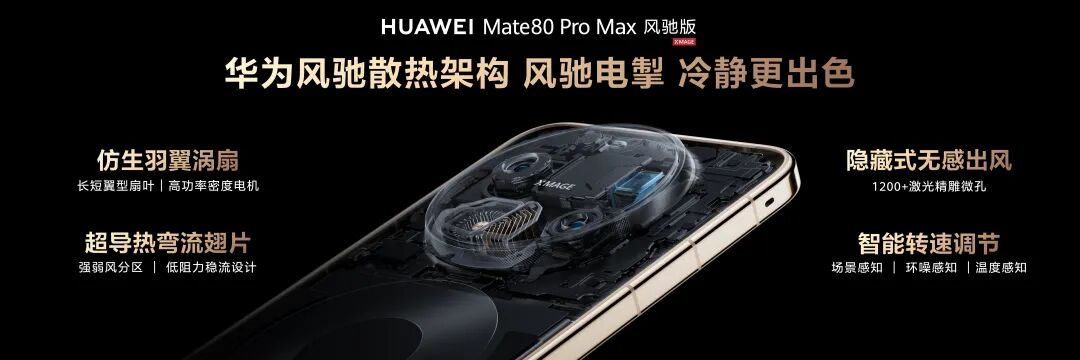 作为首款搭载了风扇型主动散热结构的 Mate 手机,Mate 80 Pro Max 风驰版不仅实现了华为对于自身传统产品定位的突破,同时也为鸿蒙生态带来了一种全新的产品角度——