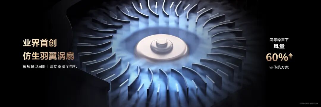 同时,在这套复杂的散热体系中,华为也创新了散热叶片的设计思维,引入了「仿生羽翼涡扇」架构。