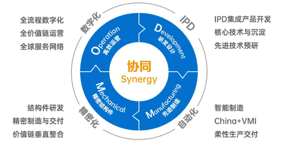 实际上,华勤技术业绩持续增长的核心底气,在于其打造的独一无二的“ODMM”平台能力,即高效运营(Operation)、研发设计(Development)、先进制造(Manufacturing)和精密结构件(Mechanical)四大核心能力的有机融合。