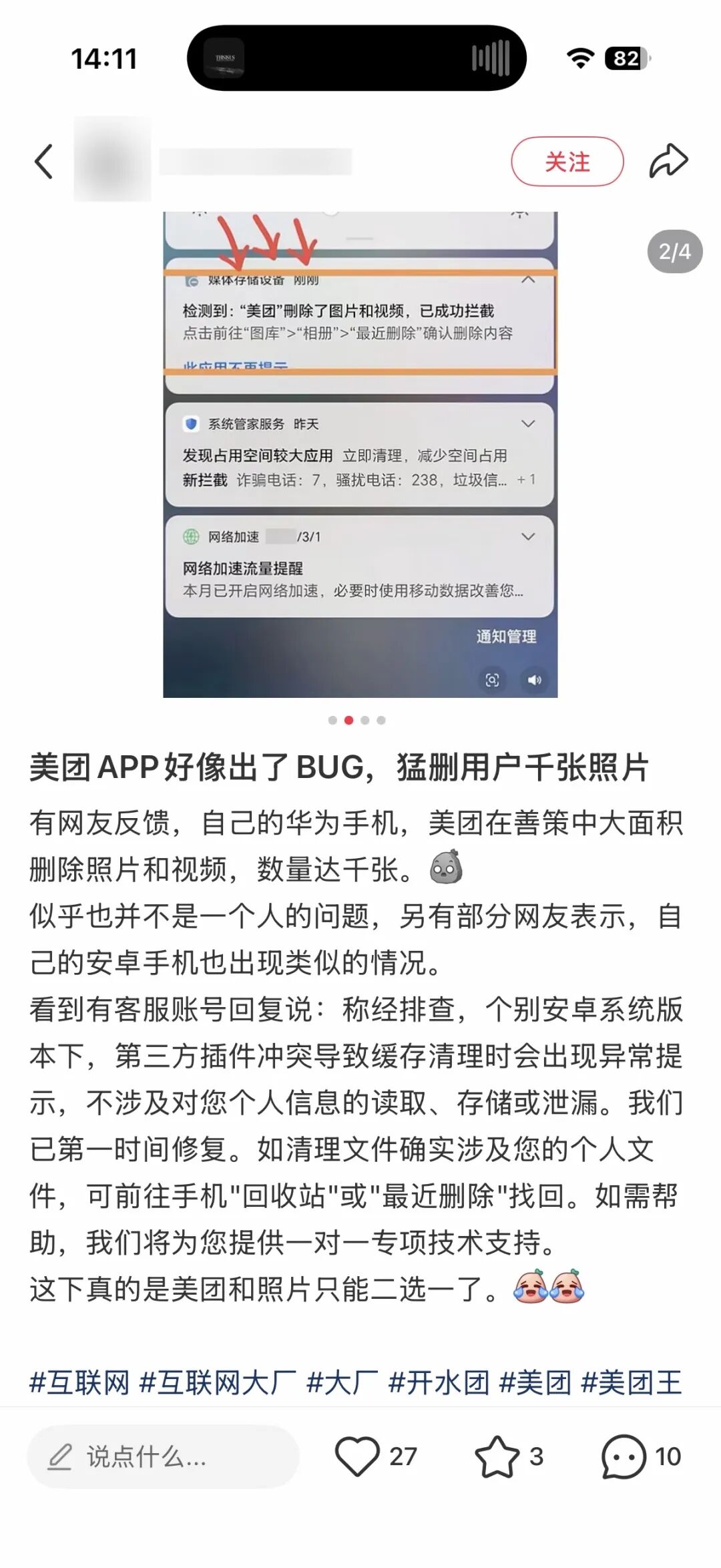 据澎湃新闻报道,近日有用户反映,在使用美团 App 期间,手机相册内的照片与视频遭到异常删除。部分用户表示,在未执行任何操作的情况下,数百乃至数千张照片、视频被自动清空,系统拦截日志显示执行删除操作的应用为美团。该话题一度登上热搜,引发广泛讨论。对此,美团官方客服昨天回应称,其在发现该问题后已第一时间进行紧急修复,并公布问题具体情况:该问题主要是安卓系统在极少数情况下,App 自动缓存清理时遇到第三方 SDK 冲突导致异常。问题发生后至今,累计有 180 多位用户进线客服咨询,预计潜在波及用户范围约在数百人。美团同时强调,此次问题仅发生在用户本地手机系统层面,美团 App 不会读取、存储或转移任何用户个人数据,用户隐私及账户信息均未受到影响。针对受影响用户,美团已迅速成立专项技术支持小组,联合专业安全技术团队协助用户找回数据,并向每一位受影响用户致歉,承诺承担全部费用并赔偿相应损失。上海迪士尼蒸包配薯片售价 70 元