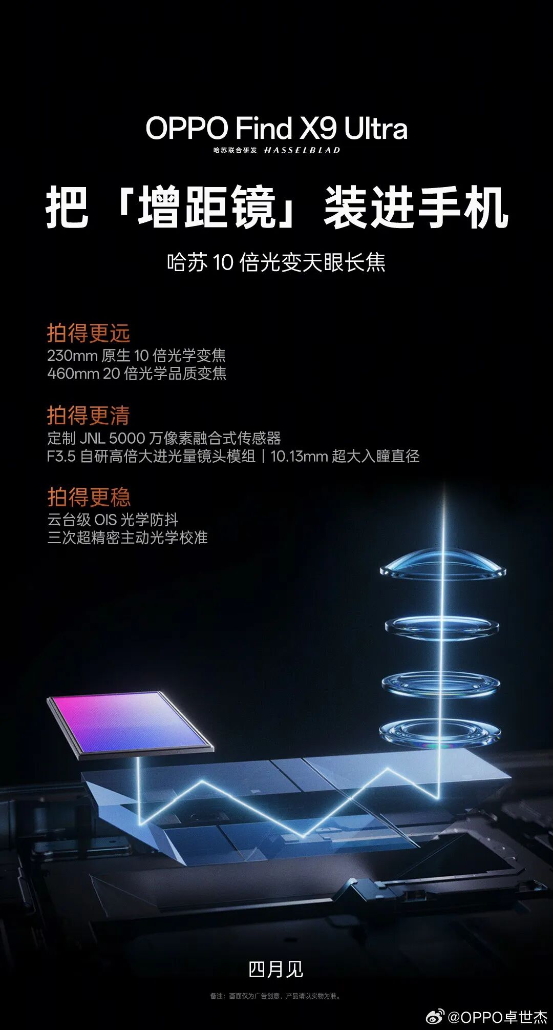 昨日,OPPO 正式宣布,新机 Find X9 Ultra 将配备 10 倍光变天眼长焦。OPPO Find 系列产品负责人卓世杰直言「增倍镜级别」。据介绍,OPPO Find X9 Ultra 10 倍长焦等效 230mm,支持 460mm 20 倍光学品质变焦;采用定制 JNL 5000 万像素融合式传感器,提供 f/3.5 大光圈(10.13mm 入瞳直径)。结构方面,Find X9 Ultra 的 10 倍长焦采用五反射倒置潜望,整体模组长度为 29mm;提供云台级 OIS 光学防抖以及 3 次超精密主动光学校准。值得一提的是,从官方放出的预热信息来看,OPPO Find X9 Ultra 将延续上代的圆形镜头 Deco 设计。Claude 版「龙虾」上线