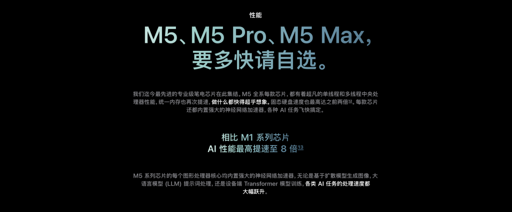 刚刚新鲜出炉的 M5 Pro/Max MacBook Pro,苹果也将其包装成一款「AI 电脑」,大而高速的集成内存,每个 GPU 核心内置神经网络加速器,让 MacBook Pro 成为了 AI 模型部署、处理的最具性价比选手。