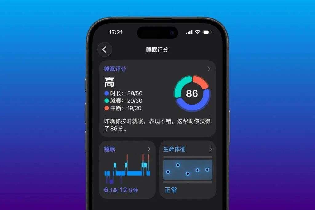 除此之外,苹果还在开发一个专注于健康的 AI Agent,能够针对针对每个用户的健康数据,AI 会给出个性化的分析和建议——新的「睡眠评分」,其实已经用到了 AI 生成个性化分析。