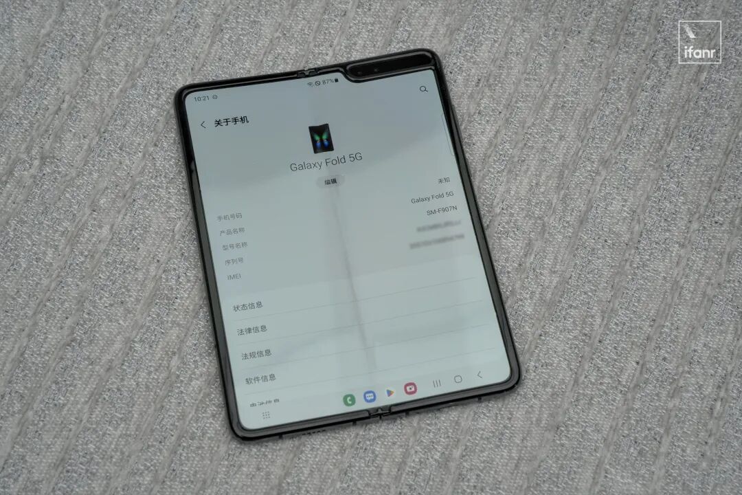 然而即使跨过这么多年,拿起这台 Galaxy Fold 最具有冲击力的第一观感,仍然是中间那条巨大的折痕: