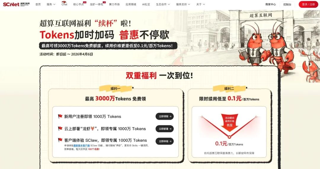 昨天,国家超算互联网宣布启动新一轮词元(Token)赠送活动,单人最高可免费领取 3000 万词元额度。本次活动旨在降低科研专属智能体「龙虾」SClaw 等产品的使用门槛,领取规则如下:新用户注册并登录超算互联网,即可获得 1000 万 Tokens;在超算互联网上一键部署 OpenClaw,可再领 1000 万「养虾」专属 Token(已参与上一波活动的老用户,体验时长将统一延长至 4 月 6 日);参与超算互联网客户端 SClaw 功能测试体验,可额外获得 1000 万「养虾」专属 Token。此外,超算互联网用户此前享有的 0.1 元 / 百万 Tokens 特惠续用价,有效期同步延长至 4 月 6 日。SpaceX 最快本周提交 IPO,目标募资超 750 亿美元