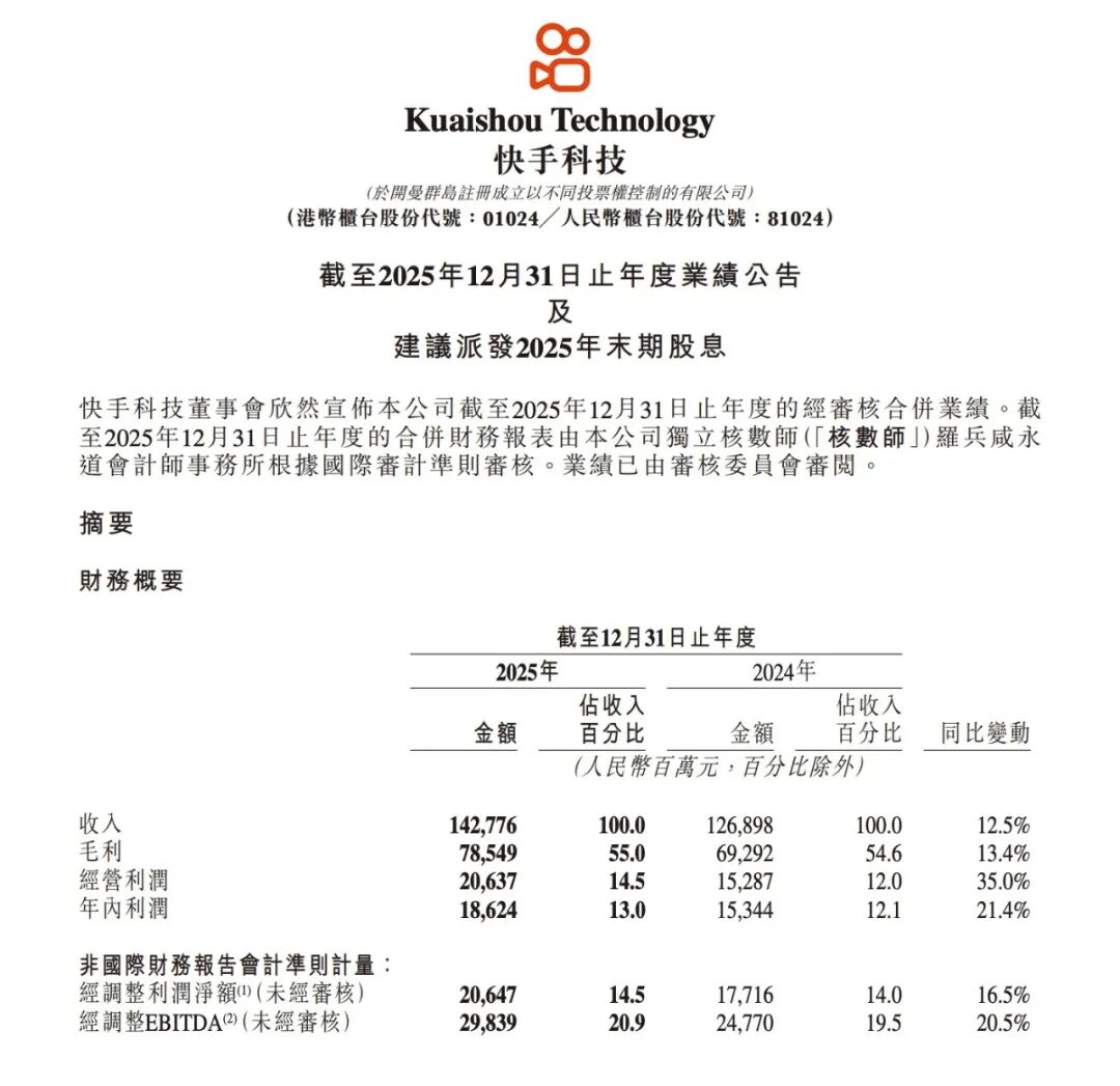 快手科技昨日披露 2025 年全年业绩,总体来看:全年营收 1427.76 亿元,同比增长 12.5%;经调整净利润 206.47 亿元,同比增长 16.5%;全年日活跃用户 4.102 亿,月活跃用户 7.246 亿;第四季度日均使用时长达 126 分钟;全年 GMV(商品交易总额)约 1.6 万亿元,第四季度同比增长 12.9% 至 5218 亿元。可灵 AI 第四季度营收达 3.4 亿元,去年 12 月单月收入突破 2000 万美元,年化收入运行率(ARR)达 2.4 亿美元。研发投入方面,去年全年研发开支同比增长 18.8% 至 144.91 亿元,销售及营销开支占收入比例则从 32.4% 降至 29.6%,盈利质量持续改善。Cloudflare 选择 Kimi K2.5 替代闭源模型,推理成本直降 77%