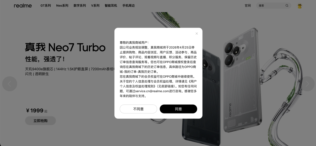 因公司业务规划调整,真我商城将于 2026 年 4 月 25 日停止提供购物、商品内容浏览、用户反馈、活动参与、商品评价、帖子评论、观看视频与直播、积分服务,保留历史订单信息查询服务等。真我表示,OPPO 商城后续可以查询用户在真我商城的历史订单信息;真我商城下的会员权益可在 OPPO 商城中继续使用。另外,真我社区近期也宣布,因公司业务规划调整,真我社区将于 2026 年 4 月 25 日 14:00 停止提供社区运营,后续真我手机相关内容与互动,将在 OPPO 商城圈子继续运营。今年 1 月,真我(realme)正式回归 OPPO 商城,并上架手机、耳机等产品;同时 realme 全面接入 OPPO 的售后服务体系。小米汽车遭「老头乐」公司起诉