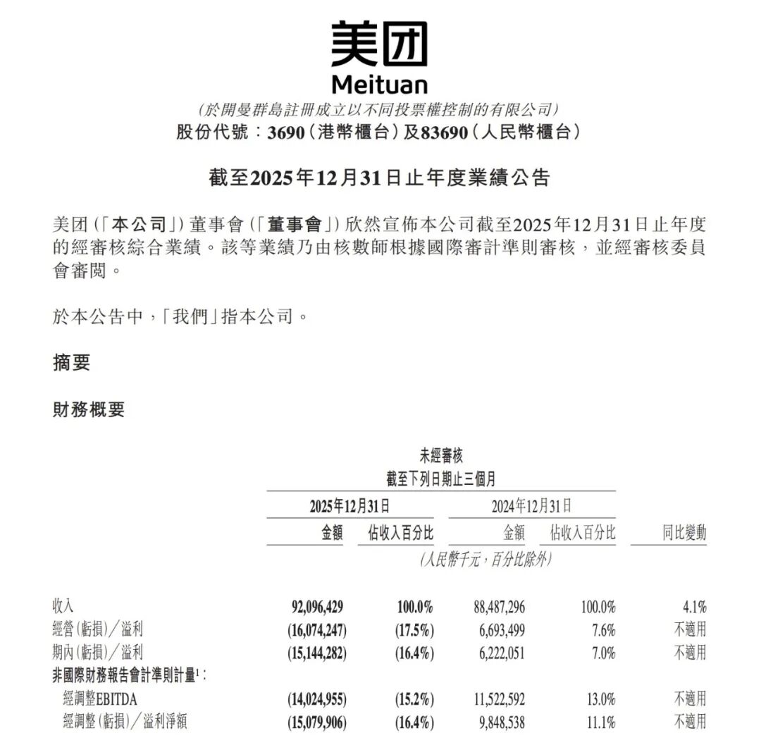 营收 3648.5 亿元,同比增长 8.1%,但全年录得亏损 234 亿元,由前年盈利 358 亿元大幅转亏。销售及营销开支同比激增 60.9% 至 1029 亿元,占收入比例从 19% 升至 28.2%;核心本地商业分部经营利润率从 20.9% 骤降至 -2.6%,经营亏损 69 亿元;研发开支同比增长 23.5% 至 260 亿元,主要用于 AI 投入。在 AI 布局上,美团去年推出智能助手「小美」与「小团」,依托自研「LongCat」系列大模型深耕本地生活场景。据第一财经消息,在随后的财报电话会上,美团 CEO 王兴提及了出海、AI 等重点业务的发展规划。报道称,王兴花了较大篇幅讲述美团对于 AI 的看法。他表示,在 AI 革命中唯一合理的策略是进攻,而不是防守。但美团不会盲目追求成为「词元工厂」,而是将 AI 视为战略机遇,用于改进、加强甚至彻底变革本地服务这一核心业务。王兴表示,自 2023 年初以来,美团在资本支出和 AI 人才上进行了大规模投入,「除有云计算业务的企业外,美团在 AI 上的投入规模,大概率是国内企业里最大的,且已经坚持布局三年多了。」王兴认为,AI「超级入口」关键在于精准理解用户需求,并且高效执行任务,其复杂程度远超「聊天机器人」。尤其是本地生活领域,消费场景复杂多样、海量商家信息分散,数据和信息未被有效线上化。同时,本地生活平台还需要对履约交付做深入的管理,这是通用 AI 所欠缺的能力。王兴表示,未来模型能力会持续优化,美团也会继续深化「小团」在美团 APP 里的融合,力争让美团成为未来本地生活需求的 AI 入口。另外,电话会还透露了一季度外卖亏损将好转的消息。王兴表示,预计今年一季度餐饮外卖的单均亏损环比优化幅度会好于去年四季度。刘强东造游艇最新进展:制造基地落户大连