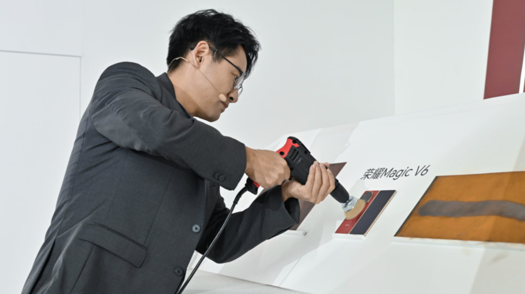 今年MWC和荣耀Magic V6国内发布会上,无论是具身机器人现场演示后空翻、太空步等高难度动作,机器人手机Robot Phone具身交互神化,眼神追随、点头互动、音乐律动……用“生命感”替代冰冷参数,到电钻磨屏、引体向上承重、冰冻防水、高空滑索等可视化挑战,荣耀开始以一种非常直观接地气的方式,将技术的领先型和实际使用场景结合展示。