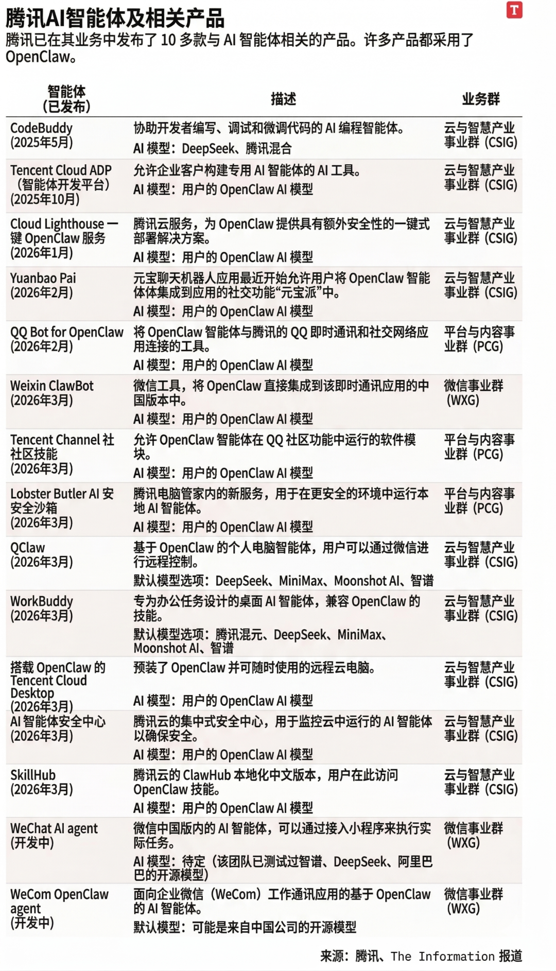 99 年生的张舒昱,是腾讯电脑管家团队入职不久的产品经理,在腾讯里这算不上核心业务线。今年 1 月 OpenClaw 刚在中国爆火,她着了迷,拉上几个人攒了一个产品原型 QClaw:基于 OpenClaw,一键安装,通过微信直接操控智能体。项目在腾讯体系里几乎没有存在感,没有立项审批,没有总办资源,几个年轻人凑在一起写代码。3 月 9 日,QClaw 内测上线。一周之内,数百万用户注册。高层反应极快,随即调拨数十名员工和计算资源到张舒昱的团队。同日,另一支团队推出了 WorkBuddy,同样兼容 OpenClaw。再隔一天,腾讯港股大涨超过 7%,投资者把涨幅直接归因于这两只虾。3 月 11 日凌晨 2:06,马化腾发了条朋友圈:「自研龙虾、本地虾、云端虾、企业虾、云桌面虾,安全隔离虾房、云保安、知识库……还有一批产品陆续赶来。」这对腾讯 11 万员工是一个鲜明的信号,无数员工将其解读为:Pony 支持他们 all in 龙虾。据 The Information 报道,截至本月,腾讯内部同时有 8 个团队在开发基于 OpenClaw 的产品和服务。加上在研和内测项目,总数已超过 10 个。15 年前,腾讯内部三个团队赛跑移动 IM,张小龙的广州研发部跑出了微信,是腾讯史上赛马最成功的一次。一个 99 年产品经理做的边缘项目,两周之内变成一家万亿市值公司的战略支点,似乎有点不可思议。张舒昱在采访时说了一句大实话:「我们都在用 AI Agent 做实验。此刻,没有人能说什么是最佳方法。」翻译一下就是:我们也不知道答案,但先跑起来总比站着强。要理解腾讯对龙虾的狂热,先要直面鹅厂当下在 AI 竞争中的处境。过去两年,中国 AI 大模型军备竞赛打得昏天暗地。阿里砸钱做千问,字节孵出豆包,在用户规模和模型能力上都拉开了身位。腾讯呢?手握游戏和微信广告的丰厚利润,但在 AI 赛道上远不及这两个对手激进。自研的混元大模型尚且无法与竞争对手匹敌,又拖累了自家 AI 助手「元宝」的进展。今年的春节大战元宝带着十亿红包参战,日活一度超 5000万,但据晚点报道,到 年初七,元宝日活迅速回落,几乎回到春节前的水平。腾讯不是没努力。去年请来前 OpenAI 研究员姚顺雨执掌混元研究,重建了研发基础设施。 4 月即将发布的混元新一代模型,业内普遍视为腾讯模型能力的一次摸底考试。但远水解不了近渴,在新模型交卷之前,缺乏强大的内部模型,让元宝在与豆包和千问的竞争中暂时落于下风。所以当 OpenClaw 在中国引爆了 Agent 热潮,腾讯高层几乎是本能地抓住了这根绳子。这只龙虾证明了 AI 的下一个爆发点未必在聊天框里,可能在桌面上,在工具里,在无数个能替你干活的智能体身上。腾讯高层的判断很清晰: OpenClaw 引发的这一轮 Agent 浪潮,将是 AI 战场重新洗牌的机会。他们逻辑是这样的,如果腾讯能通过将 OpenClaw 类Agent 能力与微信深度整合,提供配套工具和服务,成为中国最好的 Agent 使用平台,那么即便其内部大模型不是最强大的、AI助手也不是最受欢迎的,腾讯依然有可能在 AI 下半场逆风翻盘。2020 年,马化腾在腾讯内部将视频号称为「全村的希望」,寄望于它在短视频赛道上扳回一城。如今,「全村的希望」换了物种。区别在于,视频号好歹是亲生的,龙虾来自一个奥地利独立开发者的 GitHub 。某种意义上,这更像是 2014 年纳德拉接手微软后做做的事,承认在移动互联网上输了,放下「什么都要自己做」的控制欲,押注一条全新赛道。外界把多团队并行理解为经典赛马机制,腾讯内部更愿意说「多样性」。QClaw 和 WorkBuddy 是最先冒头的两只虾,路线截然不同。QClaw 是张舒昱从电脑管家边缘团队杀出来的,直接拥抱 OpenClaw 开源生态,做微信一键安装,野蛮生长。设计理念就四个字:打开即用。不需要配置环境,不需要懂终端命令,微信扫一下就能让 AI 接管你的电脑。WorkBuddy 则走了一条不同的路。负责人汪晟杰在接受 APPSO 采访时反复强调一件事:百分百自研,没用过一行 OpenClaw 源码。它走半自动化路线,避开了 OpenClaw「透传」模式下信息暴露在公网上的风险,采用 bot 推送通知模型,每一步关键操作都需要用户确认。汪晟杰的定义很明确:龙虾是一个概念,不等于 OpenClaw。WorkBuddy 要做的是安全可控的龙虾,企业能放心用的龙虾。汪晟杰透露了一个时间细节:WorkBuddy 在 1 月 17 号那个周末就已启动,三四个人通宵做出 MVP(最小化可行产品),原计划 3 月 16 日发布。看到龙虾热潮后提前了一周,撞上了 QClaw 同期发布。也就是说,腾讯并非在 OpenClaw 火了之后才匆忙跟进。多个团队在不同时间点嗅到了同一个机会,OpenClaw 的爆火更像催化剂,把水面下的项目一夜之间推上了前台。QClaw 和 WorkBuddy 功能高度重叠,都能通过微信操控 AI 智能体,用户该选哪个?8 支团队同时跑,资源会不会内耗?答案藏在张舒昱那句话里:「此刻没人知道什么是最佳方法。」8 支团队同时下场,与其说是信心爆棚,不如说谁都没有把握。腾讯选择用数量对冲不确定性,多条路线同时跑,押中一条就够了。赛马机制的精髓从来都是:靠数量提高命中概率。15 年前微信就是这么跑出来的。3 月 12 日,OpenClaw 创始人 Peter Steinberger 在 X 上公开批评腾讯,矛头直指腾讯的 SkillHub 服务复制了社区 Skills 却没有做出任何贡献。两天后,腾讯通过 GitHub 捐款,随后被列为特色赞助商,与 OpenAI 并列。在上周英伟达 GTC 大会上,腾讯云 CEO 汤道生当面约见 Steinberger,提出由腾讯云贡献服务器和安全服务,