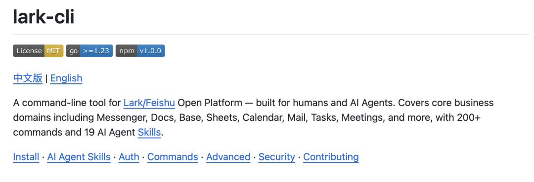 飞书官方近日在 GitHub 上正式开源了一款名为 lark-cli 的命令行工具,采用 MIT 协议发布,支持 npm 一键安装,面向开发者和 AI Agent 同时设计。