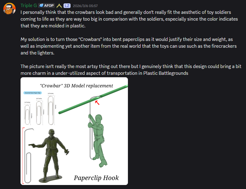 目前《Plastic Battlegrounds》在Meta Horizon商店的评论已超过8400条,评分达4.9分;在Steam商店的评价也是特别好评。它的Discord社区拥有2万名成员,玩家可以在这里直接与开发者交流,参与到游戏开发过程中,提供反馈和想法,还可以分享自己的作品和游戏故事。