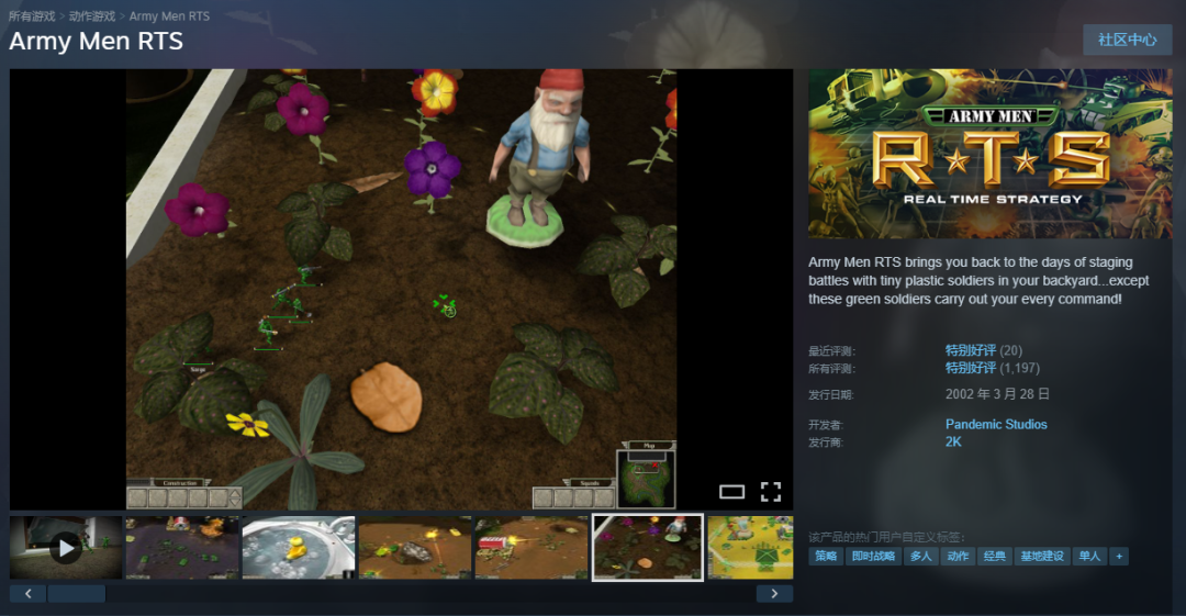 五颜六色的塑料士兵小人玩具诞生于上世纪40年代,承载着一代人的童年回忆。而“操纵塑料玩具兵”的游戏概念也并非《Plastic Battlegrounds》首创,早在1998年,老牌厂商3DO就以该为主题制作出即时战略游戏《Army Men》(国内常用译名:玩具兵大战)。除了士兵、坦克等作战单位都是塑料玩具外,战场也改为花园、房间等生活中常见的环境。